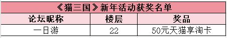 活动时间内,在本帖评论区内留下您对其他主公的新年祝福,即有机会获得50元天猫超市卡~