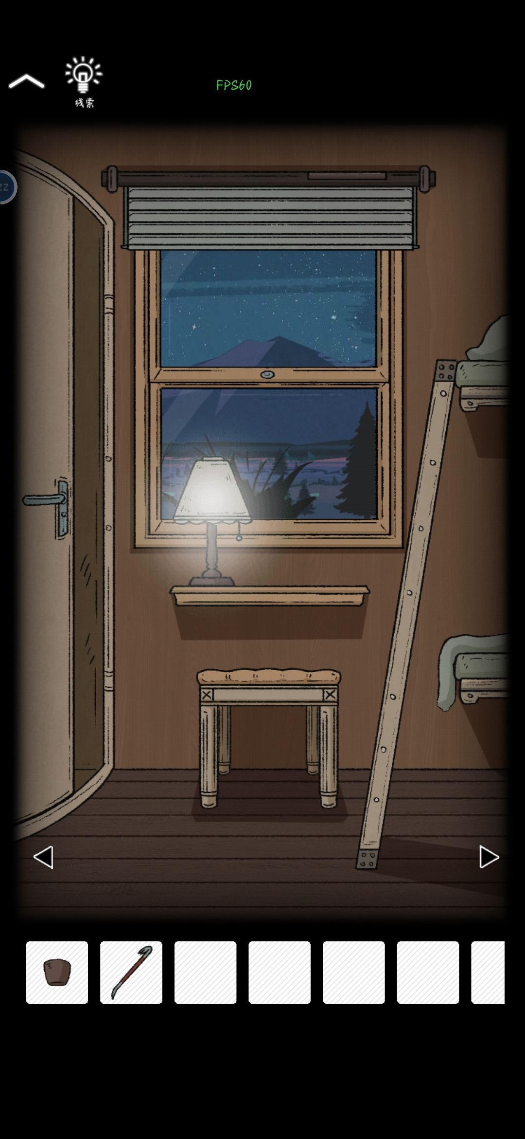 点洗脸池发现下水道里有个闪光的东西,用钩子勾上来是拉绳开关,从卫生间出去,把拉绳放到台灯上连续拉绳发现有6个颜色,凳子垫显示有些松动,窗扇从底端往上滑显示坏了,窗扇右上侧凹槽出点开显示弹簧缺失。