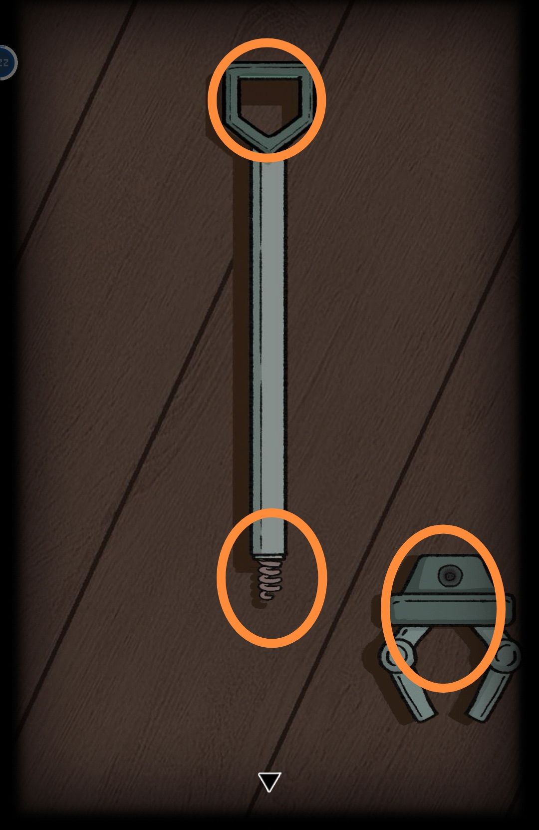 打开门拿撬棍、机械爪和左下角的软塞,弄螺丝刀拆开爪,点上面的按钮弹出来个弹簧。