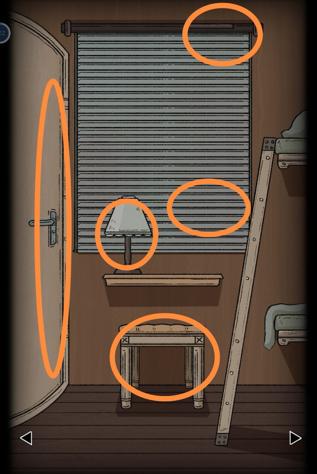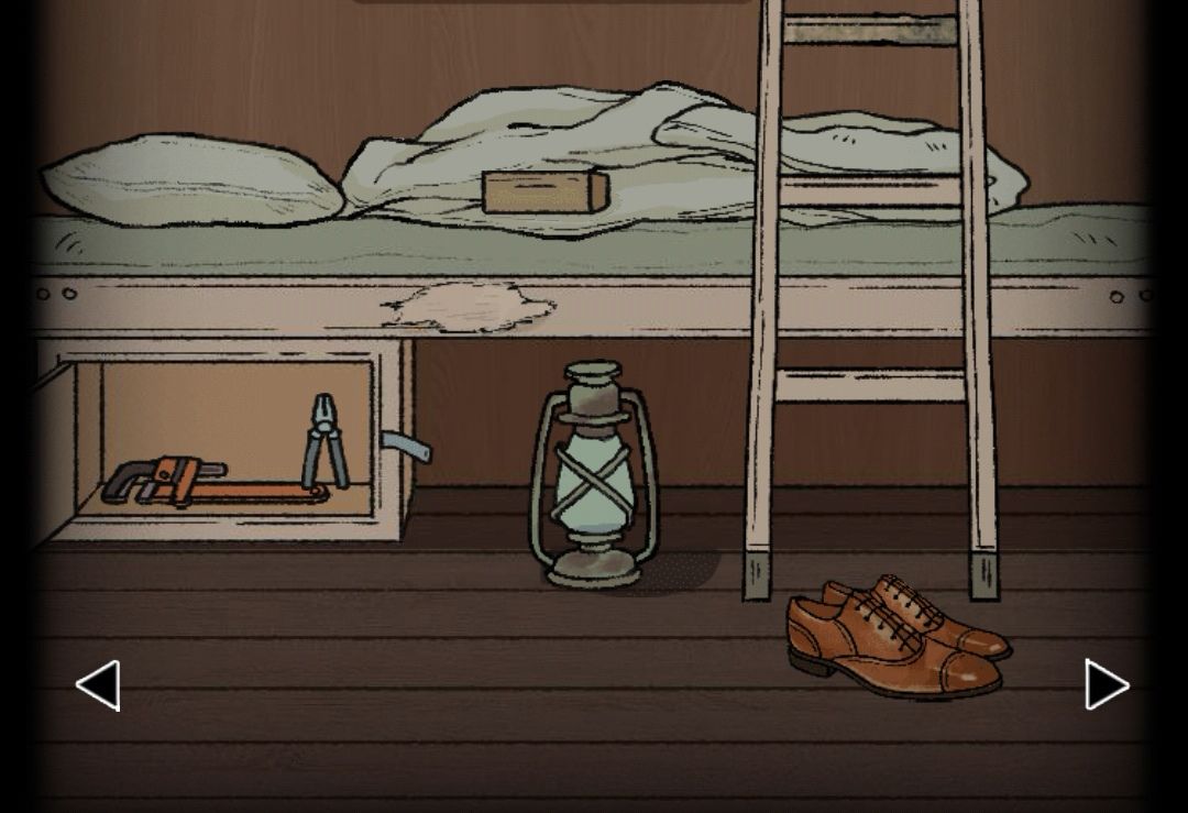 用钥匙C可以打开床下锁上的柜子,里面有钳子和扳手。床旁边显示是未完全干掉的木漆,梯子中间有坏掉的痕迹,用扳手卸下来,右侧口里有个钥匙B。点二层网里右侧的书,后面有个拼图片4,点人身上的衣服,兜里有把折叠刀。