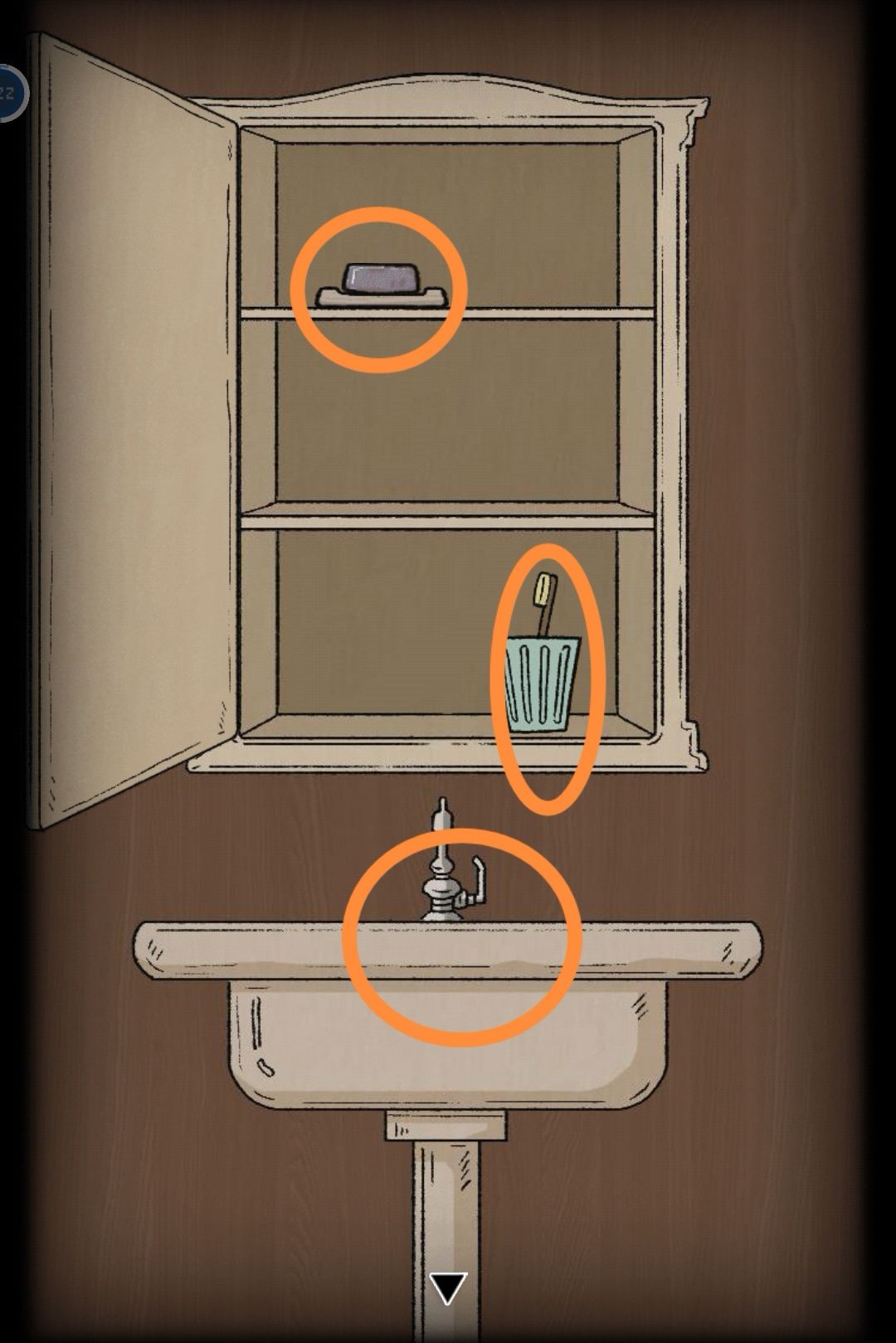 打开左侧的门,进去是卫生间,点开镜子拿到牙刷,再点杯子会从里面倒出来个拼图片6,用折叠刀打开肥皂里面是拼图片5。
