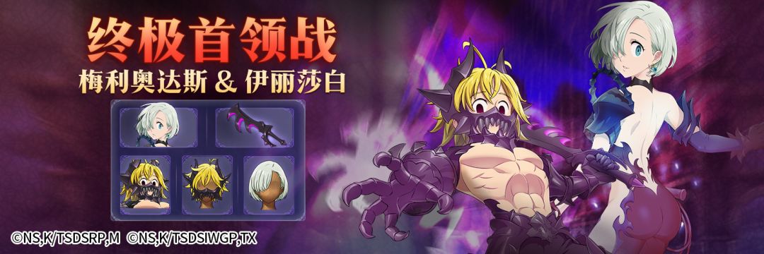 活动介绍:活动期间,挑战终极首领梅利奥达斯&伊丽莎白任务,即可获得装备刻印石、UR宝物箱、6星魔神之水和生命之水等海量道具,快来组建适合攻略的精英队伍,击败终极首领,兑换活动限定时装与养成材料吧!