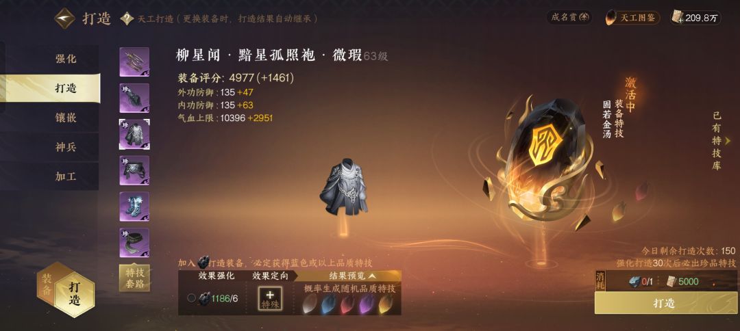 16.特技:保底30次。勾选左下角石头,用两个矿石打造出的特技品质会高!