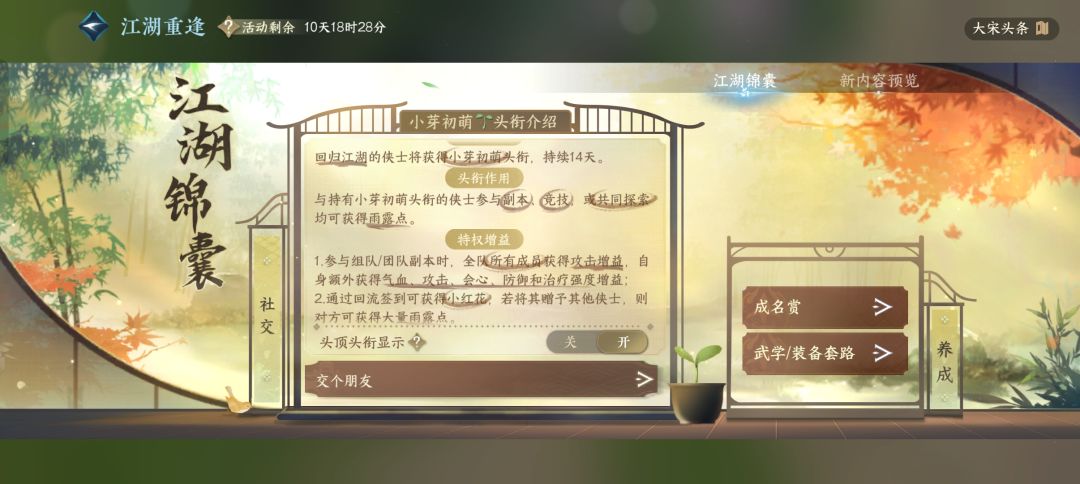 15.回归:离线15天(或者超过15天)可以解锁“补领”奖励和“小芽”头衔。建议周一把本清完后再下线卡芽。