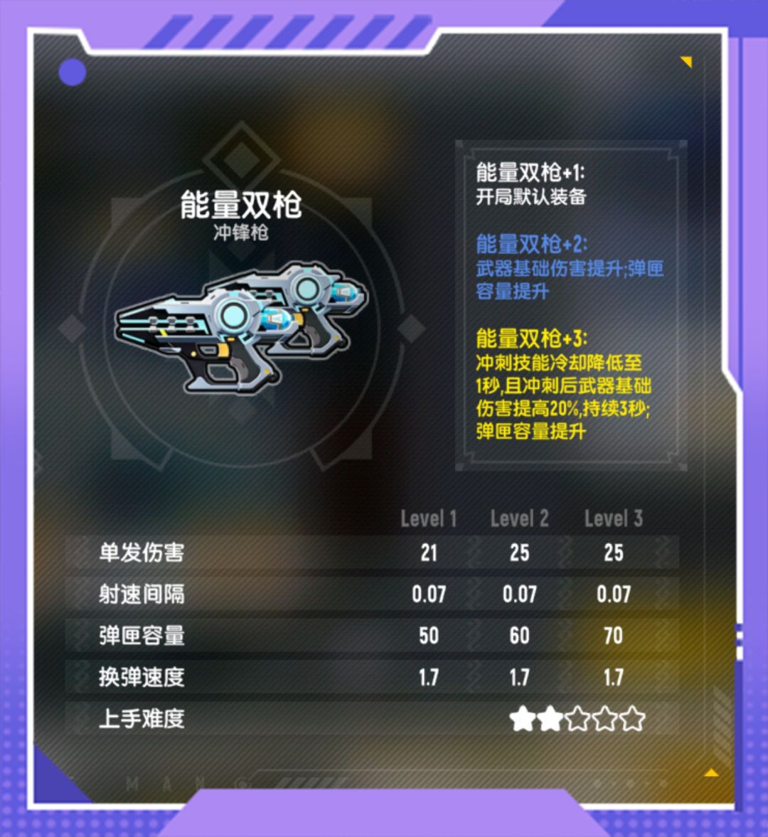 能量双枪的第2次强化可以将冲刺技能冷却降低至1秒