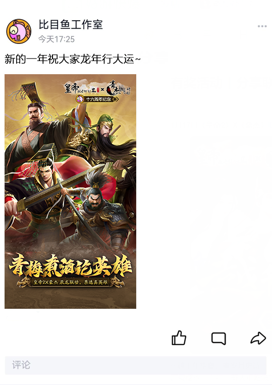 皇帝2x豪杰联动第二弹 ,现已开启!参与海报分享有奖活动,带走制作组为大家准备的新春好礼吧!