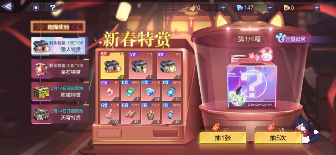 更新后,指挥官前往【迎春祈愿】中消耗祈愿券进行抽奖,可获得附魔宝箱-C型、附魔精粹、天启星石碎片等大量奖励,更可获得附魔宝箱-C型、1级天启星石、自选橙色战魂等豪华自选心愿奖励。更多奖励详情请指挥官前往【迎春祈愿】中查看。