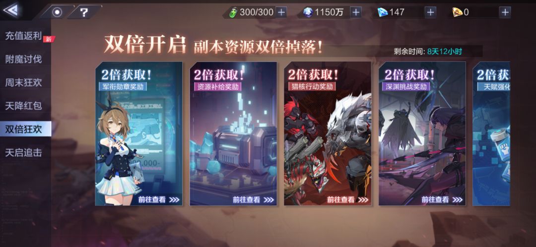 活动开启后、部分资源副本将开启双倍资源获取!详情请指挥官前往【龙腾华彩】-【双倍狂欢】中参阅详情。