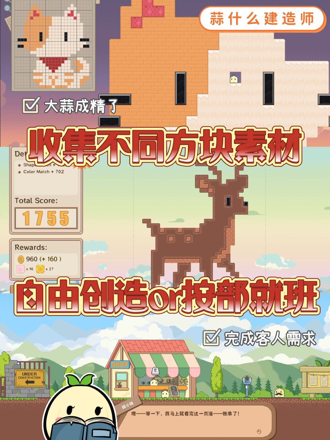 这游戏让我一度怀疑大蒜🧄成精了!根据顾客的订单 收集不同颜色的色块 可以按需求也能自定义 拼接设计可爱图案