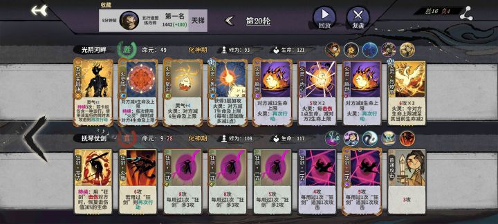 练气期:火灵阵+火灵-窜+五行刺=22,我们出六张牌清空对面血量,对面先手或者出牌少,我们输