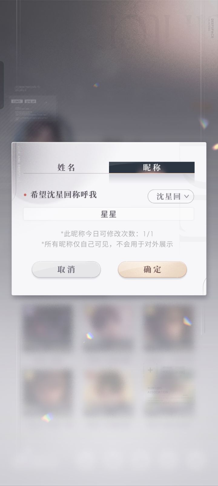 通用的词像:宝贝,姐姐。都是能念出来的,能触发特别台词