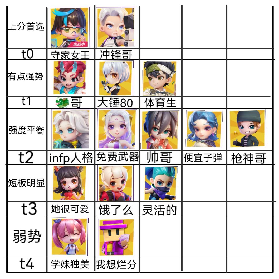 在开启本篇章之前,请先看看我自创的一张,逃跑吧猪猪逃生强度排行榜✨✨✨👏