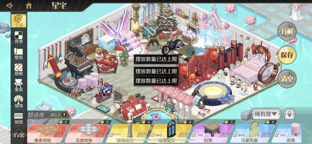 啥时候增大房屋空间或者层数。顺便把摆放上限提高下。都没摆满就上限了。