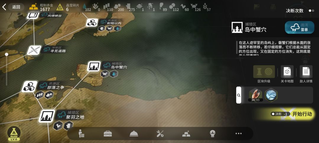 最后,奇遇的刷新时间是6天一刷,为了不错过“可以获取到遇见落沙晶蹄兽/刺棱壳龟机会”、以及“追踪荒地鼷兽”和“沉默的遗迹群”这两个有机会出信物的奇遇,建议每6天检视一遍;资源点则是每季度刷新一次,为了最大化收益,建议在刷新前把优质资源点捞一遍油水;部分顶级资源点只会在陌域中刷新,譬如“矿牢爬行”;各处城镇是中后期才用得上的东西,相当于1用1-2瓶能量饮料不消耗决断点换取基础物资,建议等不缺饮料后开始疯狂远征爽拿资源。
