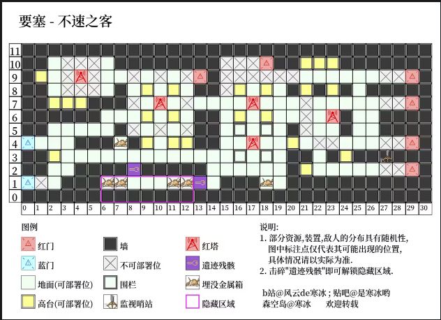 蓝门数量只有一个且敌人路线集中,甚至还有一个天然优质高台,这个配置处理日常敌袭绰绰有余