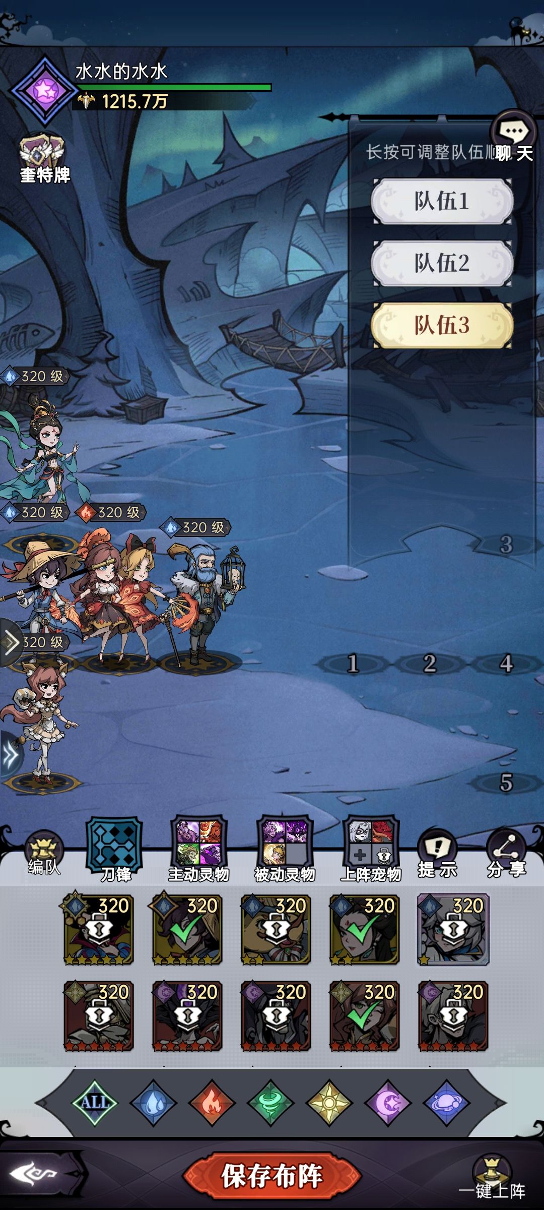 初始白雪+莫多渡过开局,逐渐替换到白雪+苏拉+外婆+鸭子+加伊。