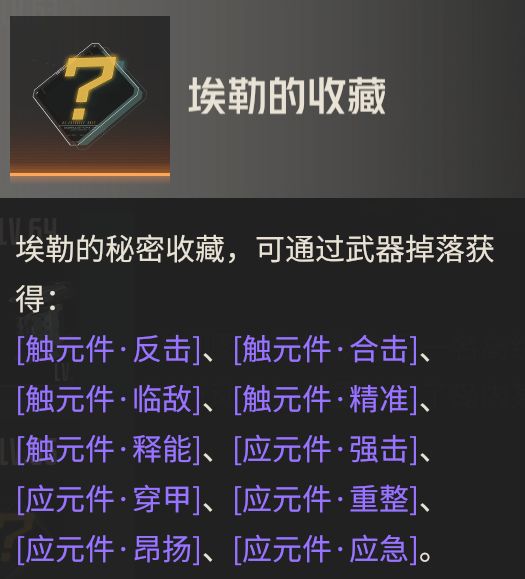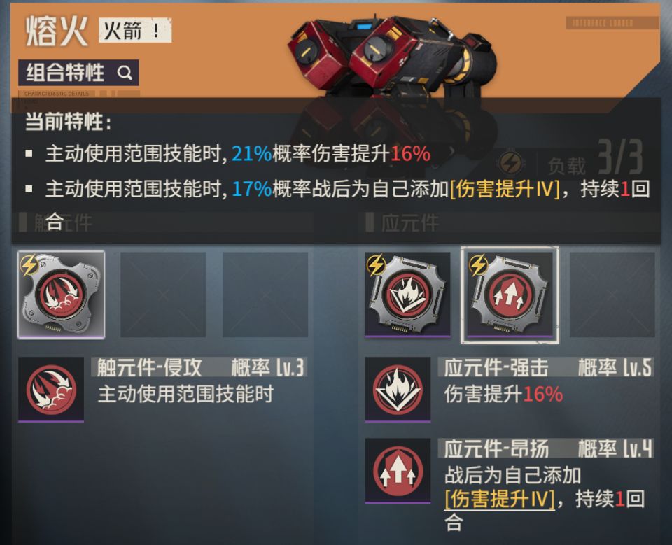 毕竟目前游戏中很多角色到了潜能3的定向增伤也才15%的幅度,而且不少机兵模组的增伤水平高点的也就是20%多的增伤幅度,而这个新增的武器元件系统在我们合理的组合下,的确可以做出触发条件相对可控,且触发效果相对可观的搭配来,不过其最大的门槛还是这个触发概率问题,目前维一观测其普遍触发条件的概率都不是很高(普遍在20%上下浮动),而且由于“触元件”不能装备同样的2个来提升概率,所以这点也是我们需要注意的一个重点。