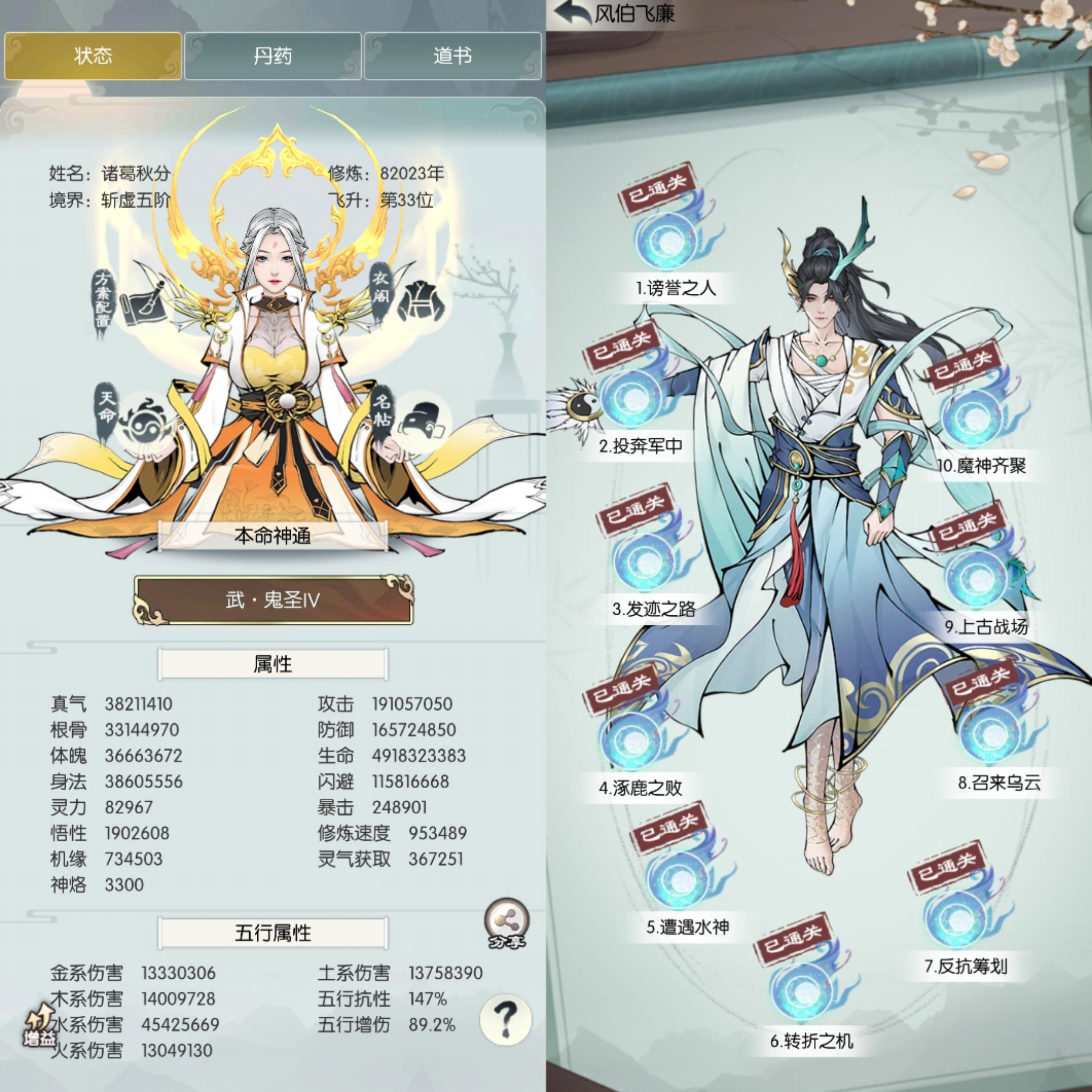 打法跟镇魔五一样,选择的是兽左剑右压血打法,区别就是风伯伤害高一点,灵兽技能需要加个恢复。然后其他基本没什么变化,技能还是五鬼、七鬼+4 输出;圣躯女娲、神通鬼圣、法则全输出、玄鱼剑胎。