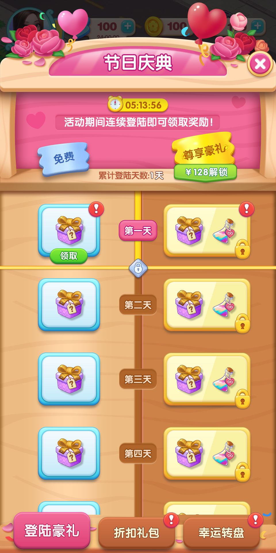 1、 活动期间,每日登陆游戏即可领取一份节日庆典福利!福利包含材料、道具、钻石、体力,情人节皮肤等超值奖励!
