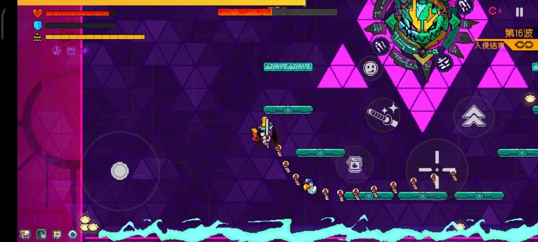 圣王在登场时,会在场上添加一圈绿色平台便于躲避攻击 同时将您的飞行功能禁用。这也意味着我们的战斗要围绕这几个平台展开[表情_微笑]