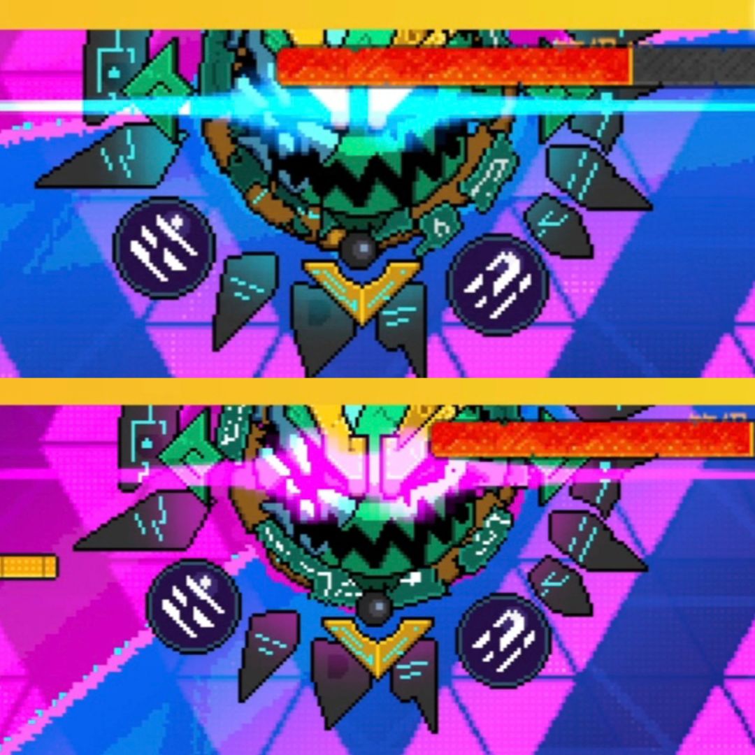 第二种是横向与纵向的激光攻击,在攻击前会有白线提示 掌握好节奏就非常容易躲开