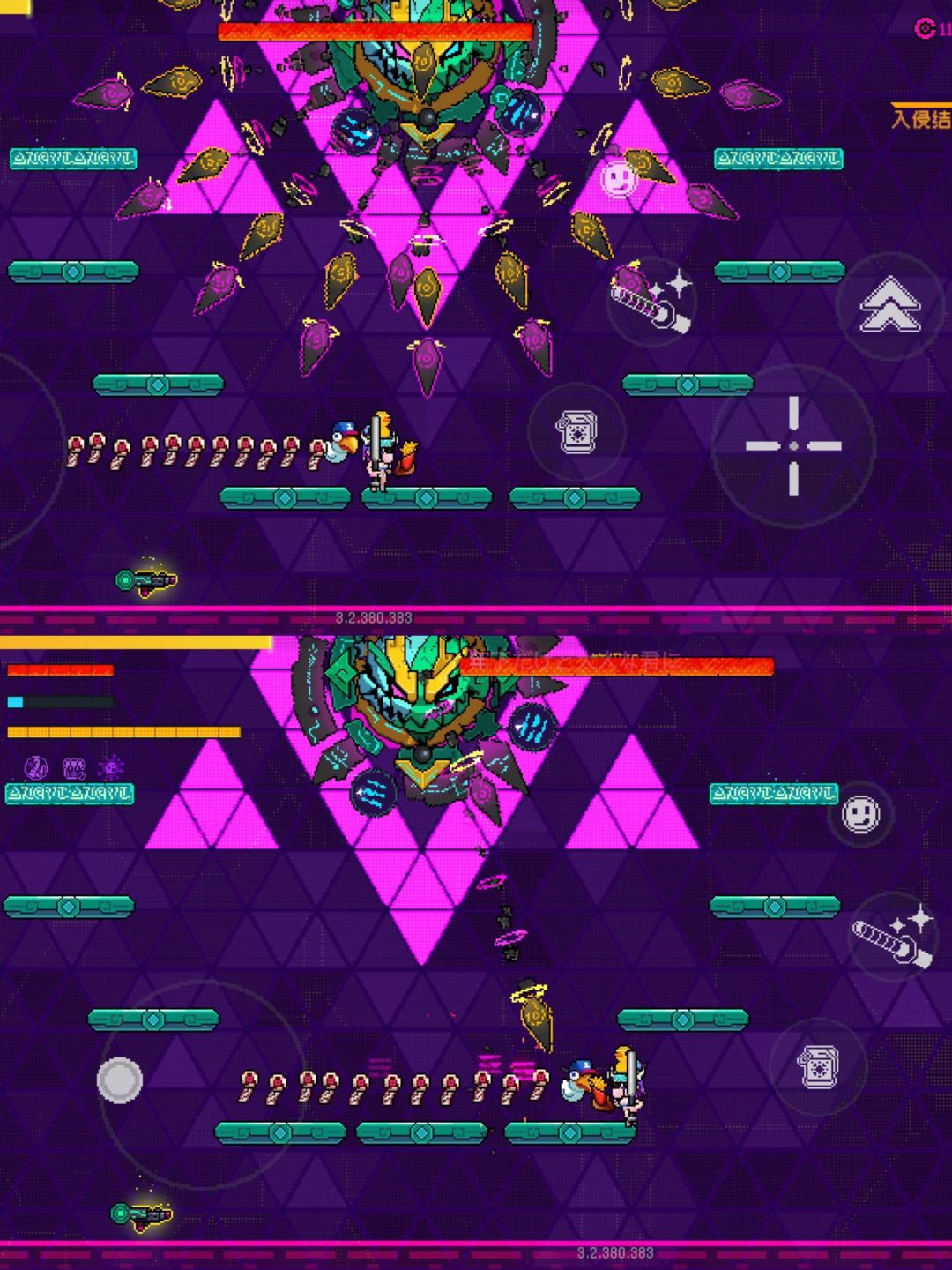 最难的点并不在于跟随蓝圈移动,而是圣王会在这期间使用地雷、弹幕与激光攻击[表情_豹哭] 本身蓝圈已经限制了活动范围,还需要躲避发射的弹幕 可以说是地狱级难度。 这期间圣王会处于锁血的保护罩状态,不过好在 您可以通过攻击圣王打碎护罩来快速结束这场闹剧[表情_可爱]
