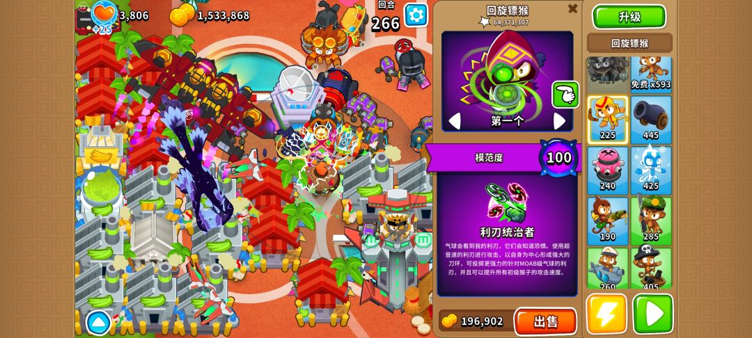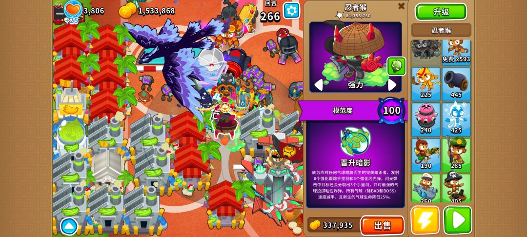 1800w击破的话有些猴子伤害低比较难拿,各类猴子效率我个人认为,击破速度如下