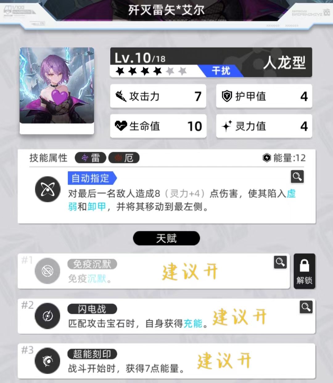 能量需求14点中等,厄能量自产自吸概率实现多动天赋【1】【2】建议开启