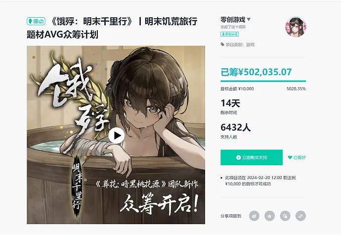 《饿殍:明末千里行》的众筹现已达到五十万!