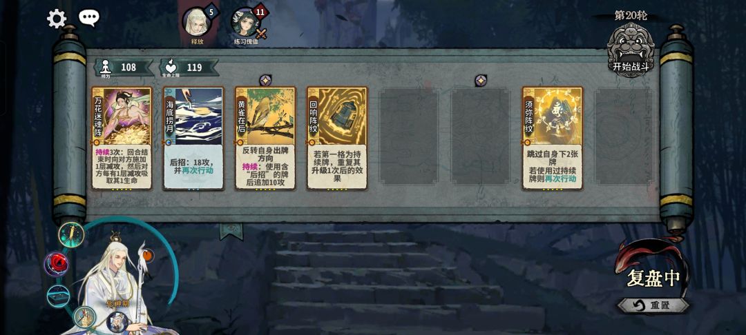 这一套里面的三张副职牌是最重要的。尤其是回响阵纹,单万花强度很差,在没有回响的情况下,用杯弓代替是最优选择。两动一定适合打一些不能一轮杀的阵容。