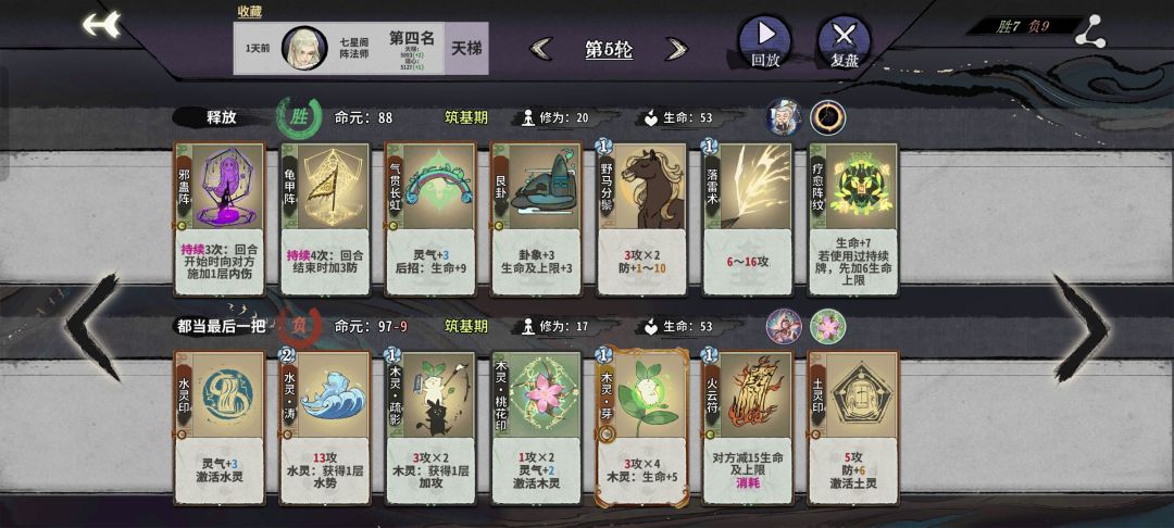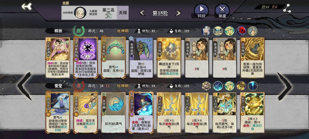 元婴核心牌杯弓,不动金刚阵,这两张可以一直用很久。