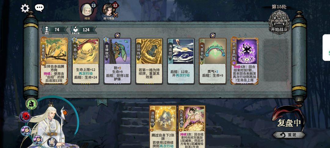 三轮上本,筑基期一直d完,优先用副职牌d过滤牌库。