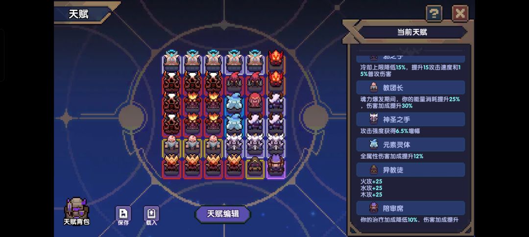 基路伯、阿撒兹勒、惩戒之手、燃烧骑士(世界,对群)、祝福之手(竞技场)、邪之子、教团长、神圣之手、元素灵体、陪审团,剩下格子按自己需求,放属性攻击或者能量上限。