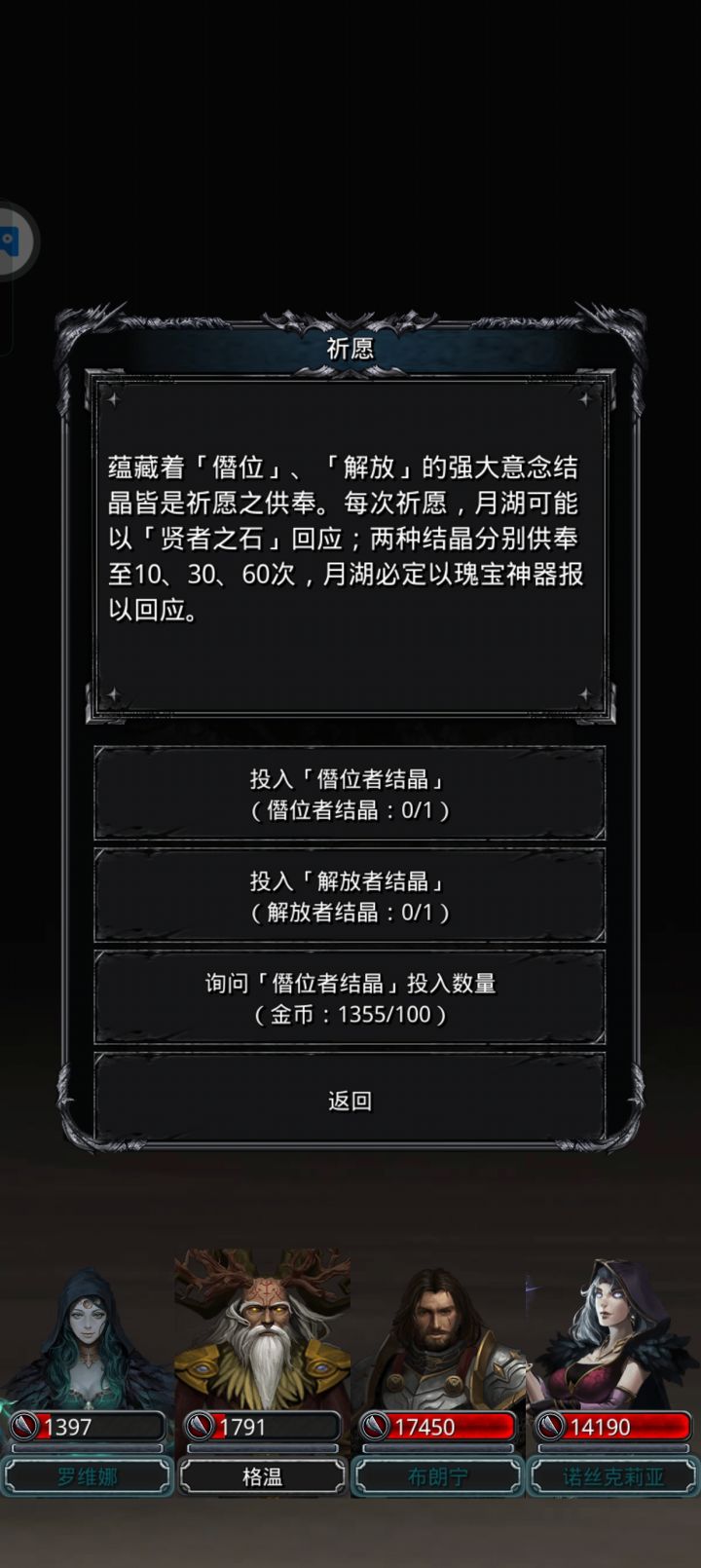 然后就是祈愿30个结晶月之铠,30个月之戒,60个独裁者,刷一个月足够了。