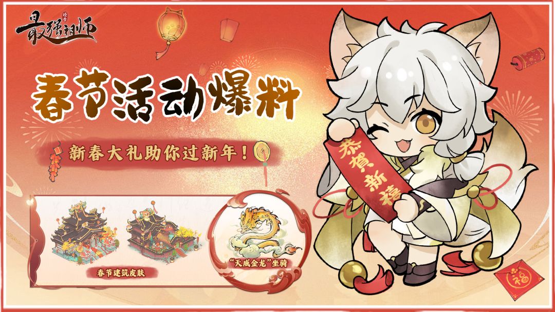 同时,最强祖师也将正式迎来新春盛典,大家将在最强祖师度过一个年味十足、欢乐无穷、温馨暖心的新春!新春盛典分为三个块面:新春免费换新衣、可劲玩、多福利!下面【祖师新春版本过年指南】,话不多说,一起来康康吧——