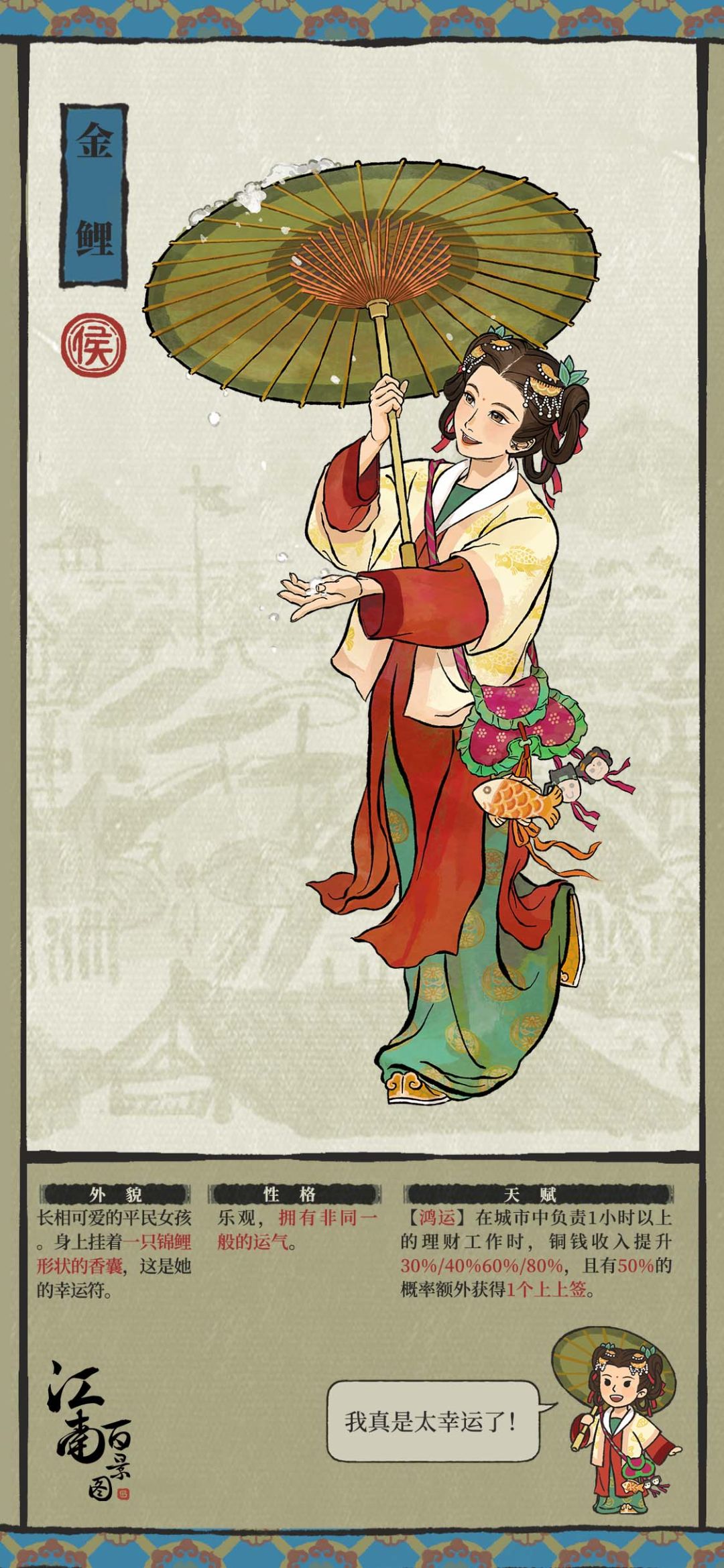 「我真是太幸运了!」金鲤常常这样说,笑容挂在她圆圆的脸上,一只锦鲤形状的香囊在她腰间摇摇晃晃。这只香囊是她的胞兄金魏从前为她做的,金鲤一直觉得这是她的好运符。