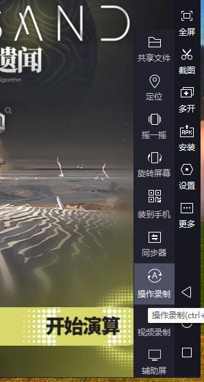 5)在这个画面时候,选模拟器右边菜单“更多”- “操作录制”,调出操作录制菜单,按下F10开始录制操作