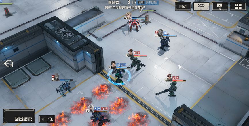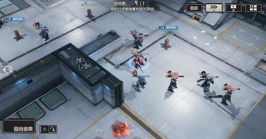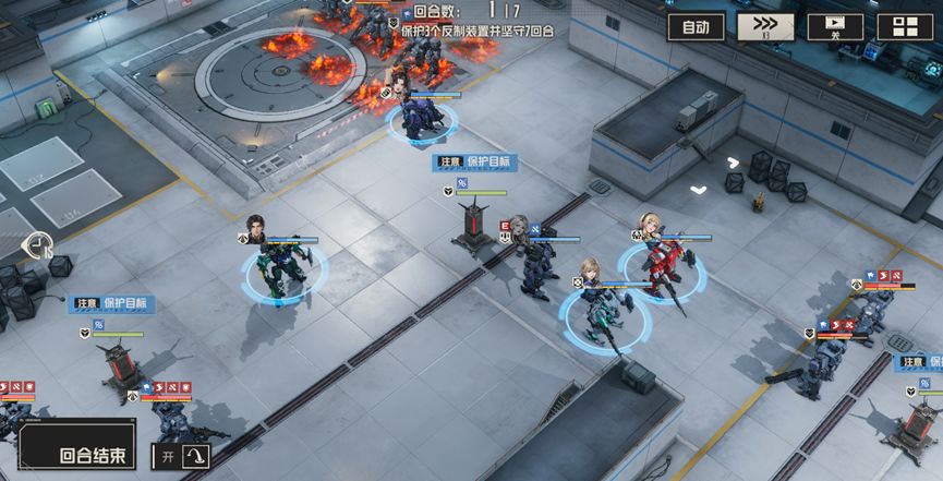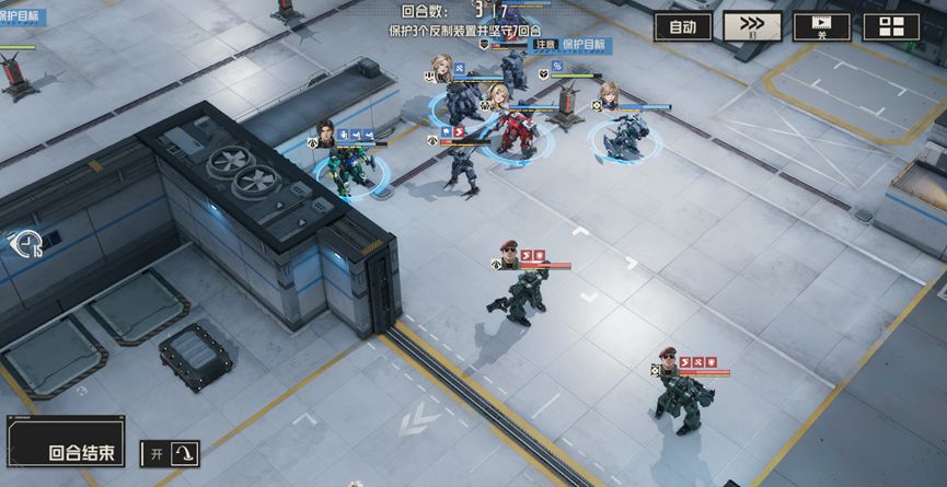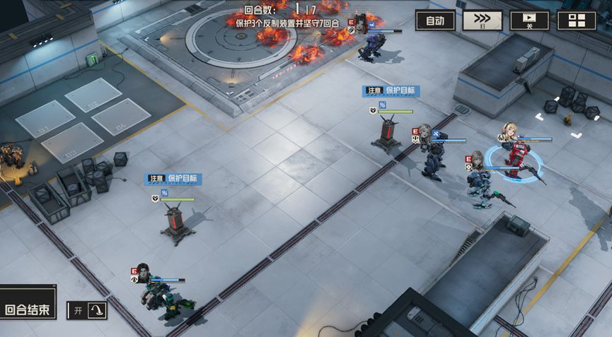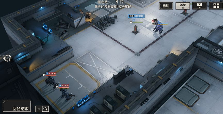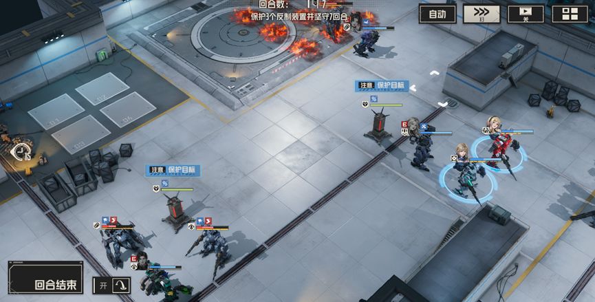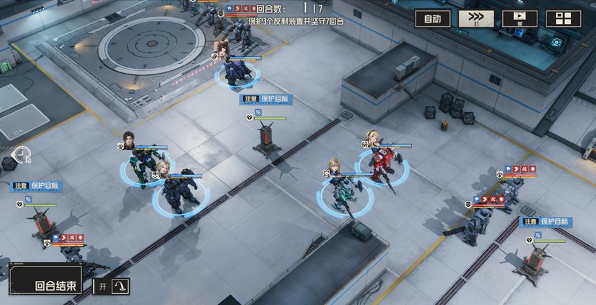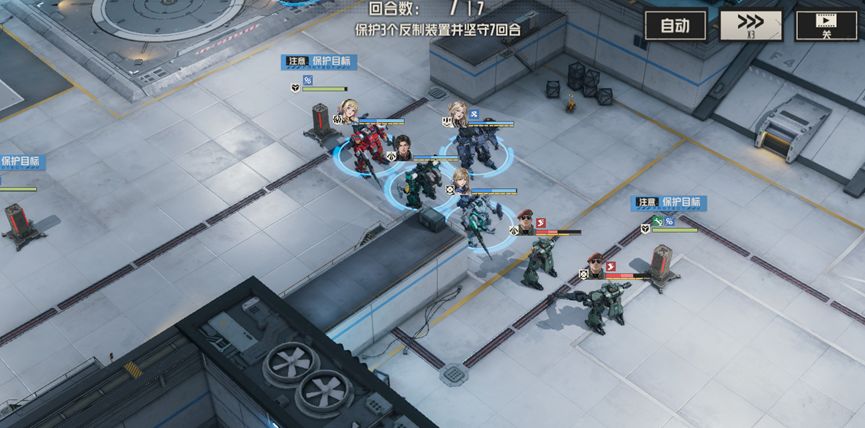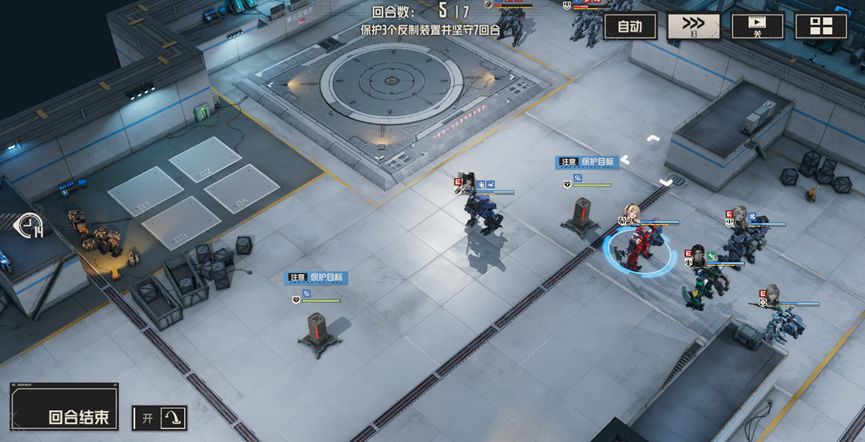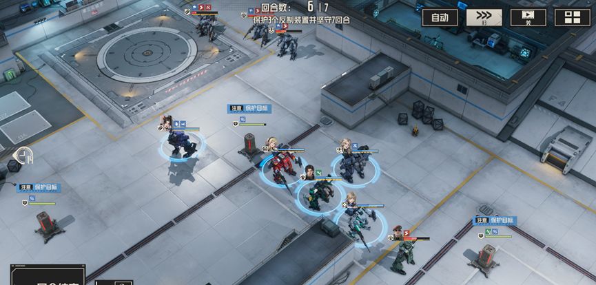 本关需要保护三个装置七回合,每个装置周围都有敌人,需要分兵去处理各处敌人。注意不要全员冒进,将装置周围敌人消灭后,还需要有部分人留守,因为后续前面两个装置处会有敌人援军出现,有可能来不及赶回来处理。如果要完成成就,就不能击杀北陆队长,但要破坏武器,防止其对装置的破坏。装置可以被维修。