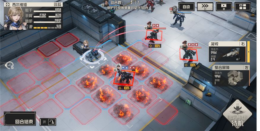 左右两边敌人出现,左边敌人离装置较近,先处理他们