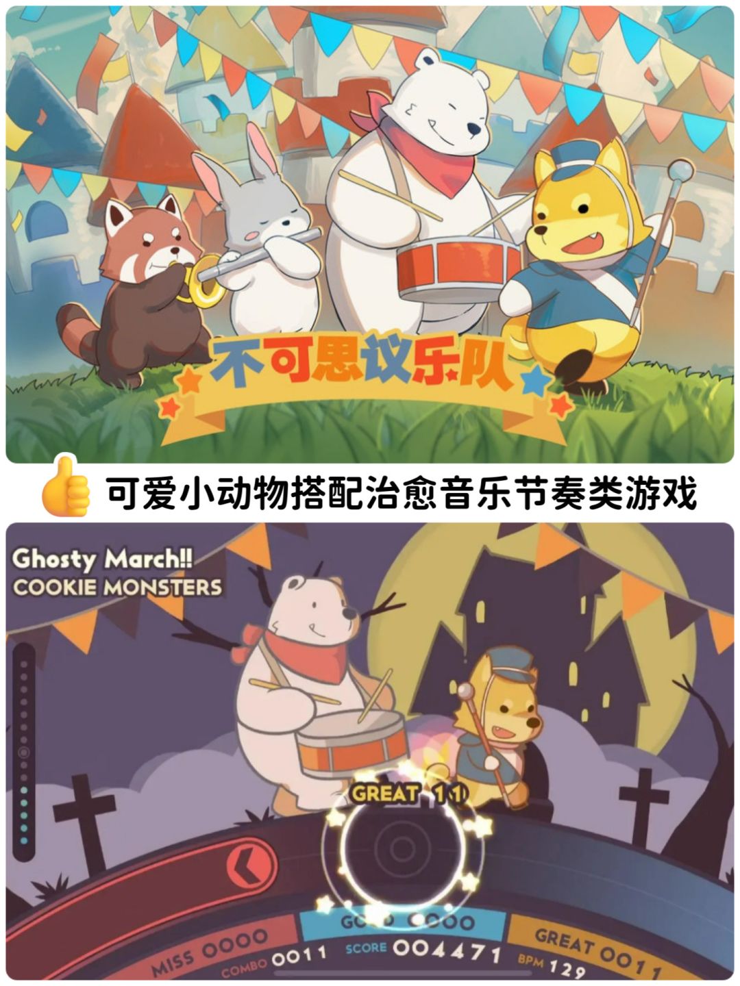 ✨音乐节奏游戏,玩家帮助小动物完成各种乐器演奏