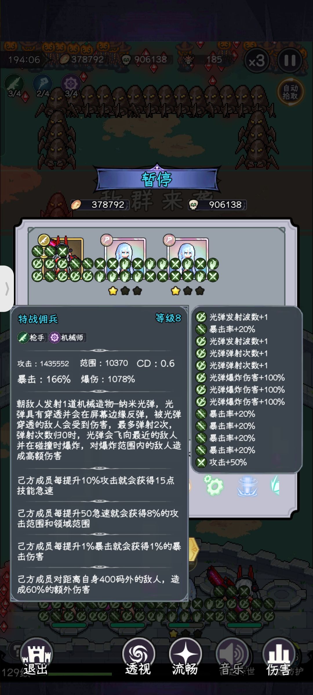 发射波数×2,爆炸伤害×2,弹射次数×2,暴击>攻击,冷却拿1个或2个,最低cd是0.5,看情况拿