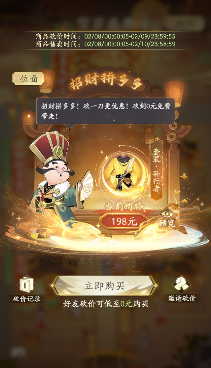 - 【招财拼多多】:邀请他人来砍价,典藏时装御器免费带回家!