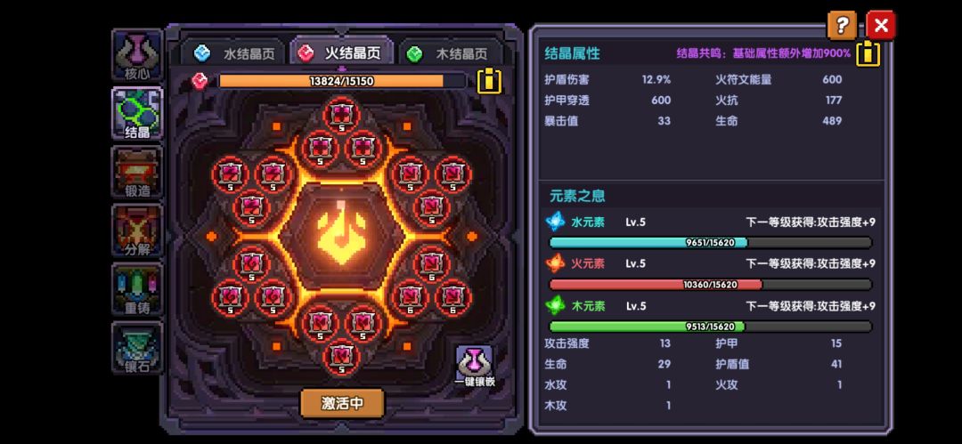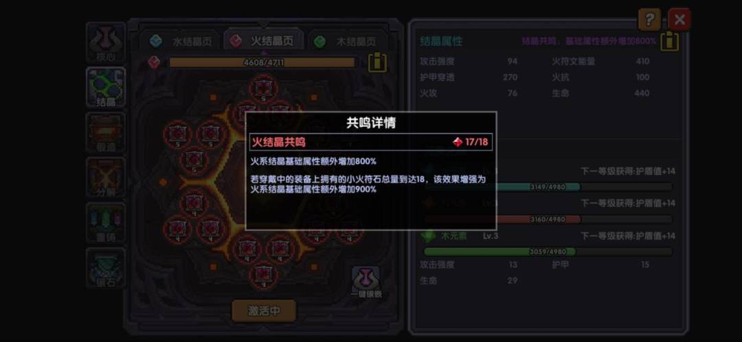 下面这个三种颜色亮亮的,就是元素之息,用于提升结晶等级