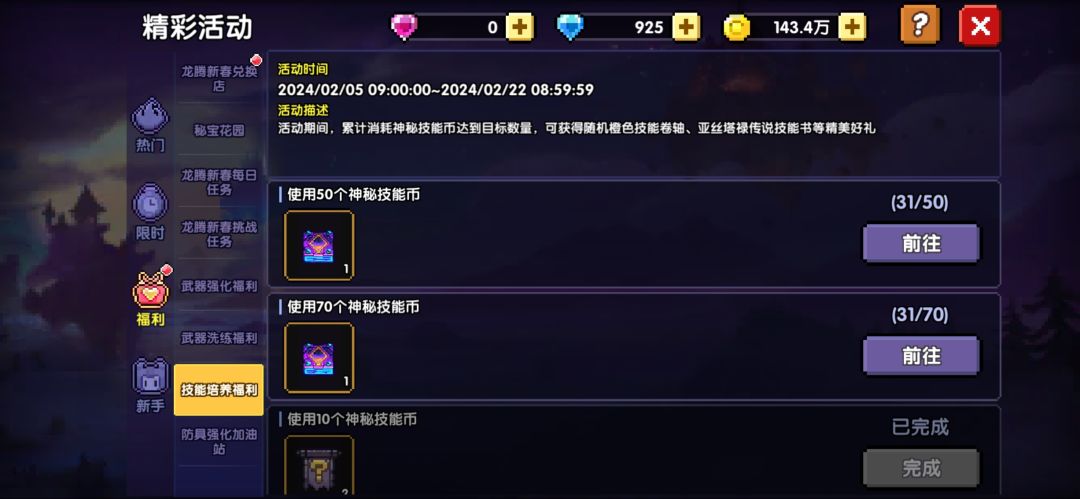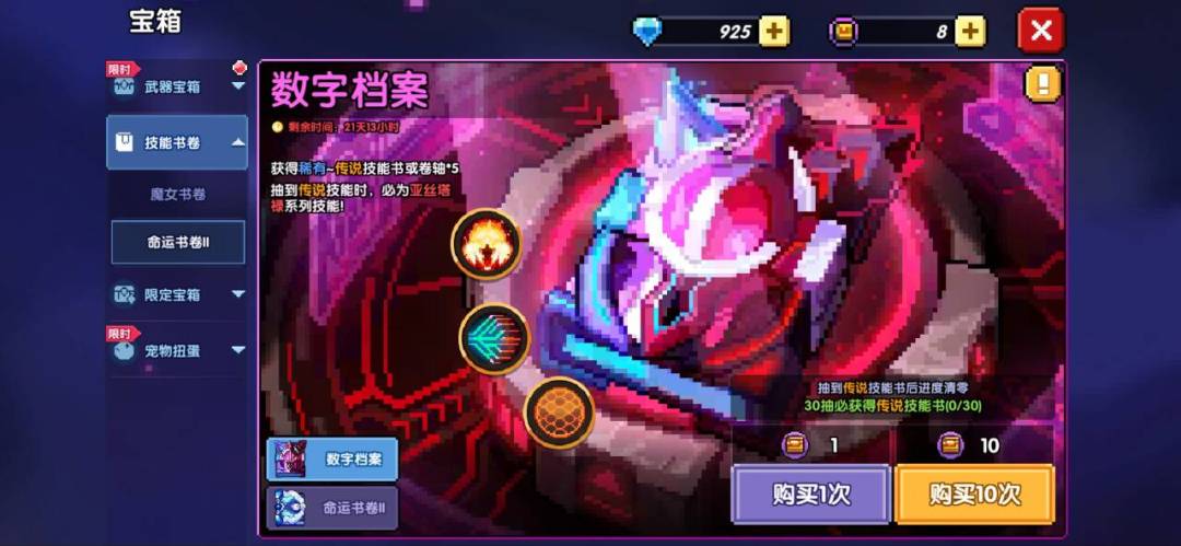 (没出的朋友可以在竞技场/深渊狩猎适时换一点技能币,到50抽,用下面这个活动奖励自选一本,注意活动时间)