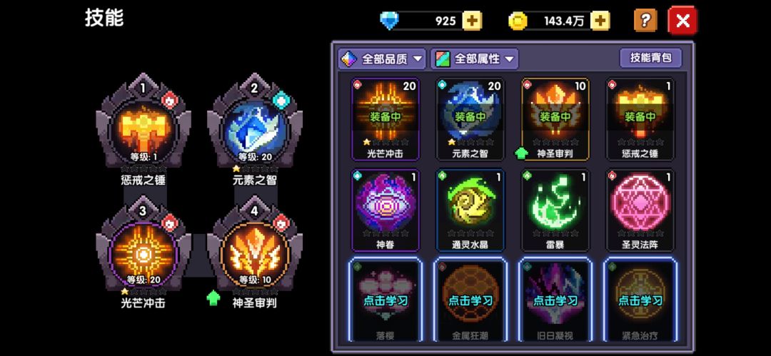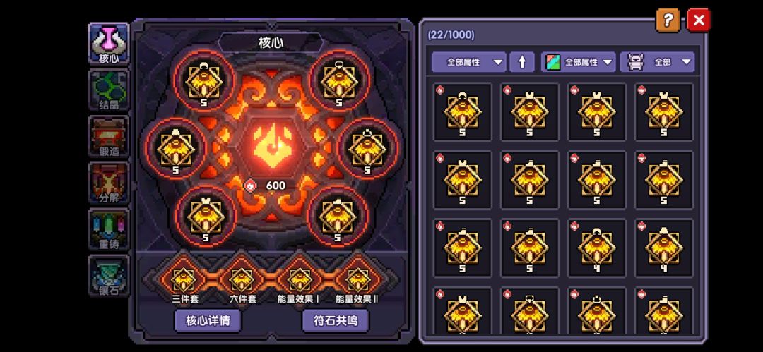 边打边更换装备,让每一个装备左侧的小石头,颜色统一为红色