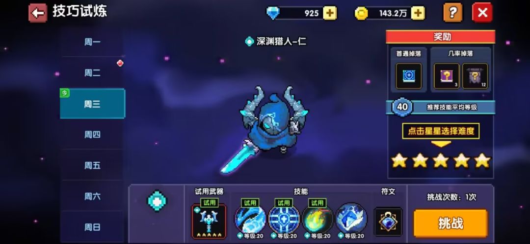 2.技巧试炼打五星(打完100层之后再来也可以)