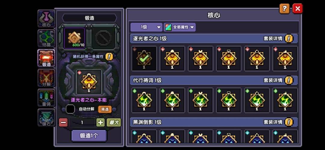 打完51之后,根据引导来到符文界面,锻造下面这个【逐光者之心】并装备