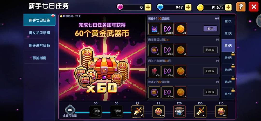 回到主城,领取60关奖励(装备传家宝)