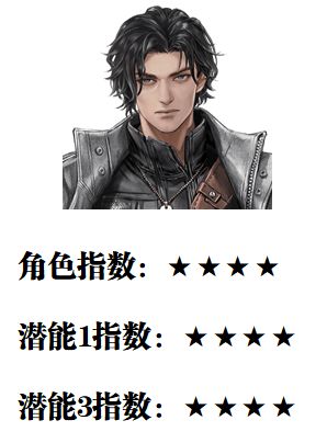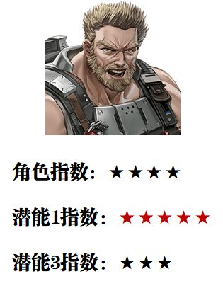 第三位是威廉,目前强度稳定在T1档位,所以角色指数维一给4颗星,不过威廉的潜能1却是对他非常重要,能不能在第1回合“架起”后干点啥,这个潜能3也是至关重要,最后威廉的潜能3效果更多是减伤,效果有但并非质变,大家按需考量即可。