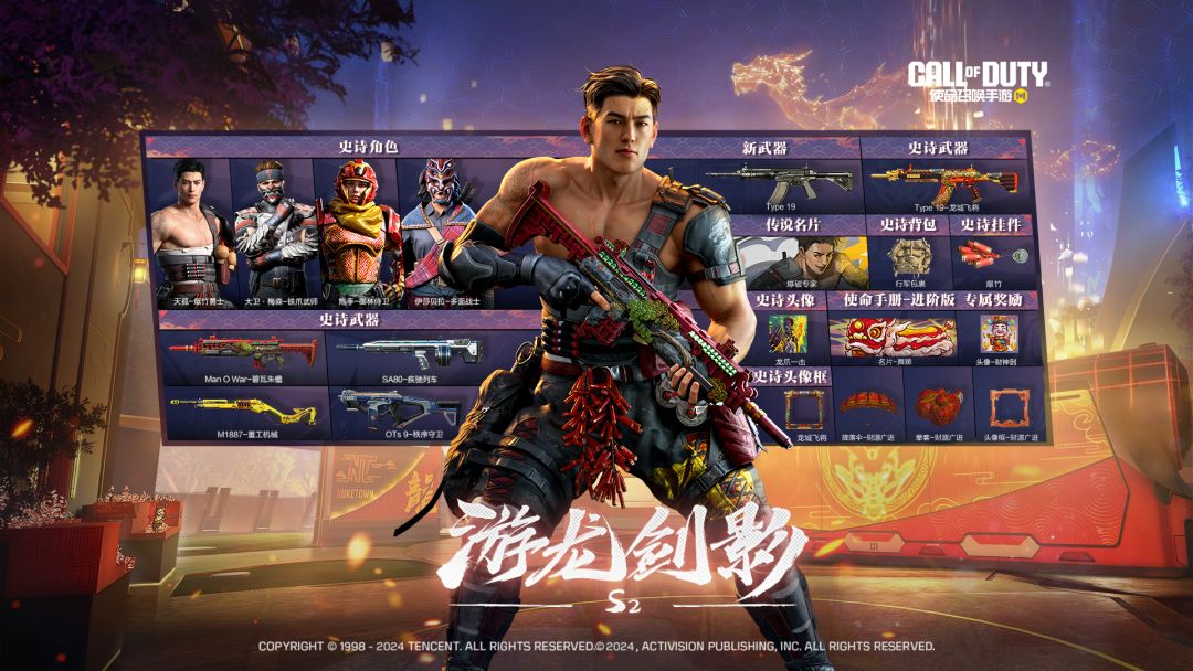 游龙剑影,即将出鞘!在S2使命手册-进阶版中,还有降落伞-财源广进、拳套-财源广进、名片-舞狮、头像框-财源广进、头像-财神到等精彩内容,它们将与战士们并肩作战,突出重围。